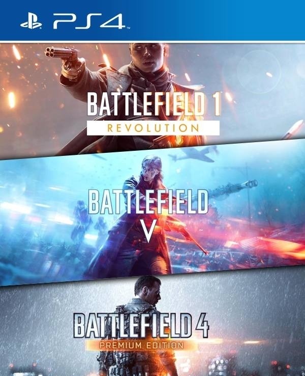 3 JUEGOS EN 1 BATTLEFIELD 4 PREMIUM EDITION MAS BATTLEFIELD 1 REVOLUTION MAS BATTLEFIELD V STANDAR EDITION PS4